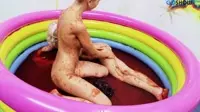 In the video titled Blonde and Brunette Indulge in Sensual Red Bath Pleasure in Inflatable Pool, the two gorgeous ladies take their lesbian desires to a whole new level.As they indulge in the sensual red bath, their naked bodies glisten under the warm water.The blonde seductress, with her golden hair cascading down her back and piercing blue eyes, caresses her brunette lovers nipples through her soaked lingerie, causing a wave of desire to wash over both of them.The brunette tentress is adorned with dark waves, framing her alluring face.Her eyes lock with the blonde, and they share a passionate moment as their hands roam freely over each others bodies, searching for pleasure spots and treasured erogenous zones.Their fingers intertwine, causing their hearts to race faster than the flowing red water around them.Their hands glide smoothly over nylonclad legs, sending shivers down their spines as they imagine what could happen if those stockings were removed.The brunettes nipples press against the lingerie, begging for the blondes attention.The video then transitions into an erotic scene within an inflatable pool.With their bodies gliding over the water surface, they explore every inch of each other as if discovering hidden treasures.The brunettes lips graze the blondes collarbone and neck, causing her to moan softly in anticipation.The blonde returns the favor by gently sucking on her lovers earlobe, evoking an orgasmic response.As the two lesbian temptresses continue their red bath pleasure, they caress each others supple buttocks, creating a sense of urgency that surpasses the serene watery background.Their fingers part ways, allowing them to touch their clitorises through soaked underwear, increasing their wetness and desire for an even deeper connection.The video reaches its climax when the two lovers lock their mouths in a passionate kiss, tongues intertwining and exploring each others wet labia.The blondes fingers move faster against her brunette companion, while she laps at her clitoris with gentle strokes, bringing them both to an overwhelming sense of happiness and lubrication.In the end, this video captures the sensual beauty of two women in love, taking pleasure in each others bodies.The bathing scene, combined with the inflatable pool, creates a world of lustful delights, where lesbian desires are celebrated in an intimate and erotic manner.
