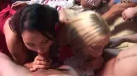 The video opens with a group of hot brunettes, wearing stockings, teasing their lovers in the background as a trio of blondes suck on their cocks.Their seductive performance brings all the guys into a frenzy, making them desperate for more.Its an orgy filled with shapely and horny couples, where each partner eagerly pleasures one another in creative and passionate ways.In the heat of the moment, two guys take advantage of a particularly sultry blonde in doggystyle position.With her ass high in the air, they ravage her from behind, pulling on her long flowing locks as she moans with pleasure.The group dynamic is palpable each participant feeds off the others energy to enhance their own satisfaction.One of the brunettes is seen performing a sloppy blowjob, her head bobbing up and down on the guys thick cock, saliva dripping from her lips.Meanwhile, a blonde is being fucked by one man while giving another a deepthroat blowjob, her legs wrapped tightly around the dudes waist.Her body convulses as she struggles to swallow his entire length without gagging, her clit throbbing for attention.The video takes a more sensual turn when two lovers find a private corner to make love.Their bodies intertwined like two halves of the same whole, they kiss passionately while caressing each others butts and cocks, exploring every inch with their hungry hands.Another couple engages in a hot 69 session, sharing the pleasure that emanates from both pussy and cock, clit and labia being sucked gently yet hungrily by the eager tongues below.The sound of skin on skin fills the room as they spread their lovers wide, ready to be penetrated and pleasured in every way possible.As the scene unfolds, a particularly adventurous blonde straddles two guys at once.She rides one of them reverse cowgirlstyle, her ass moving back and forth with powerful determination while her wet pussy grinds on his face.Simultaneously, she takes another guys cock in hand and jerks him off until he can no longer hold back his orgasm, splattering her face with cum.In a particularly intimate moment, the group comes together for a massive cumshot orgy.Each participant jacks off furiously, some even sucking on a cock to intensify their experience.The camera zooms in as hot sperm sprays across faces, bodies, and crotches.This climax marks the culmination of a video filled with passion and uninhibited sexual desire.The footage captures the raw intensity and shameless lust of the lovers involved in this orgy, leaving viewers yearning for more butts and cocks as they explore their own shapely desires.